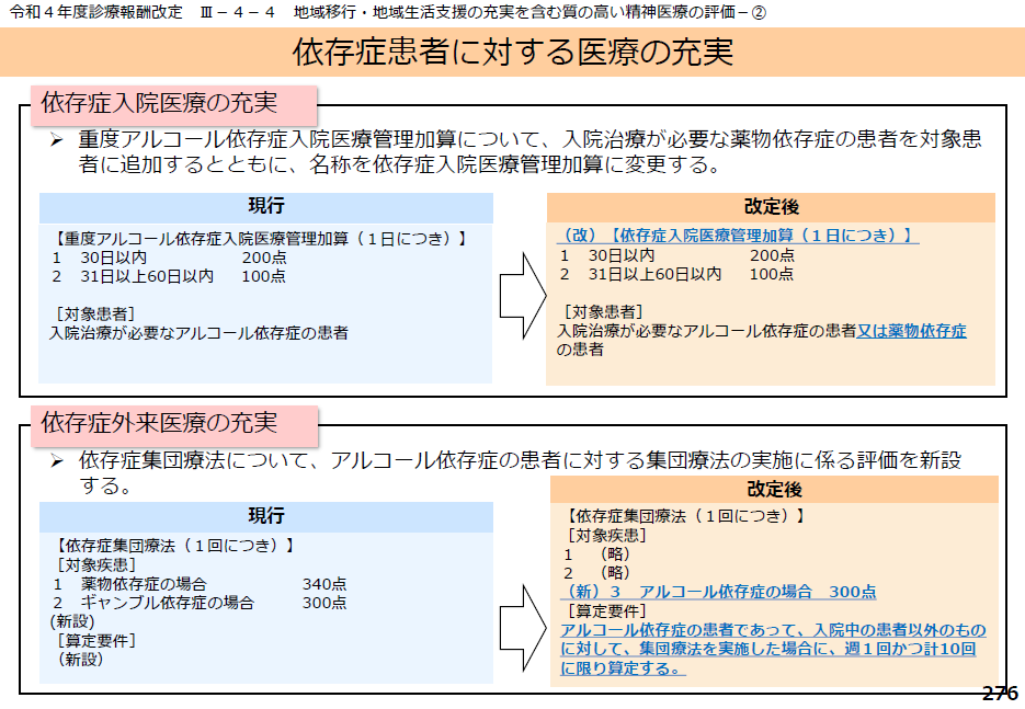 4 依存症集団療法と同一日に行う他の精神科専門療法は、所定点数に含まれるものとする。