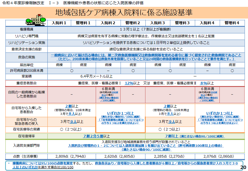ハ 当該病棟において、入院患者に占める、自宅等から入院したものの割合が二割以上であること。