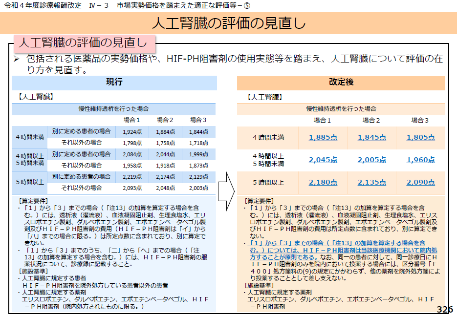 6 1から3までの場合にあっては、透析液、血液凝固阻止剤、生理食塩水及び別に厚生労働大臣が定める薬剤の費用は所定点数に含まれるものとする。